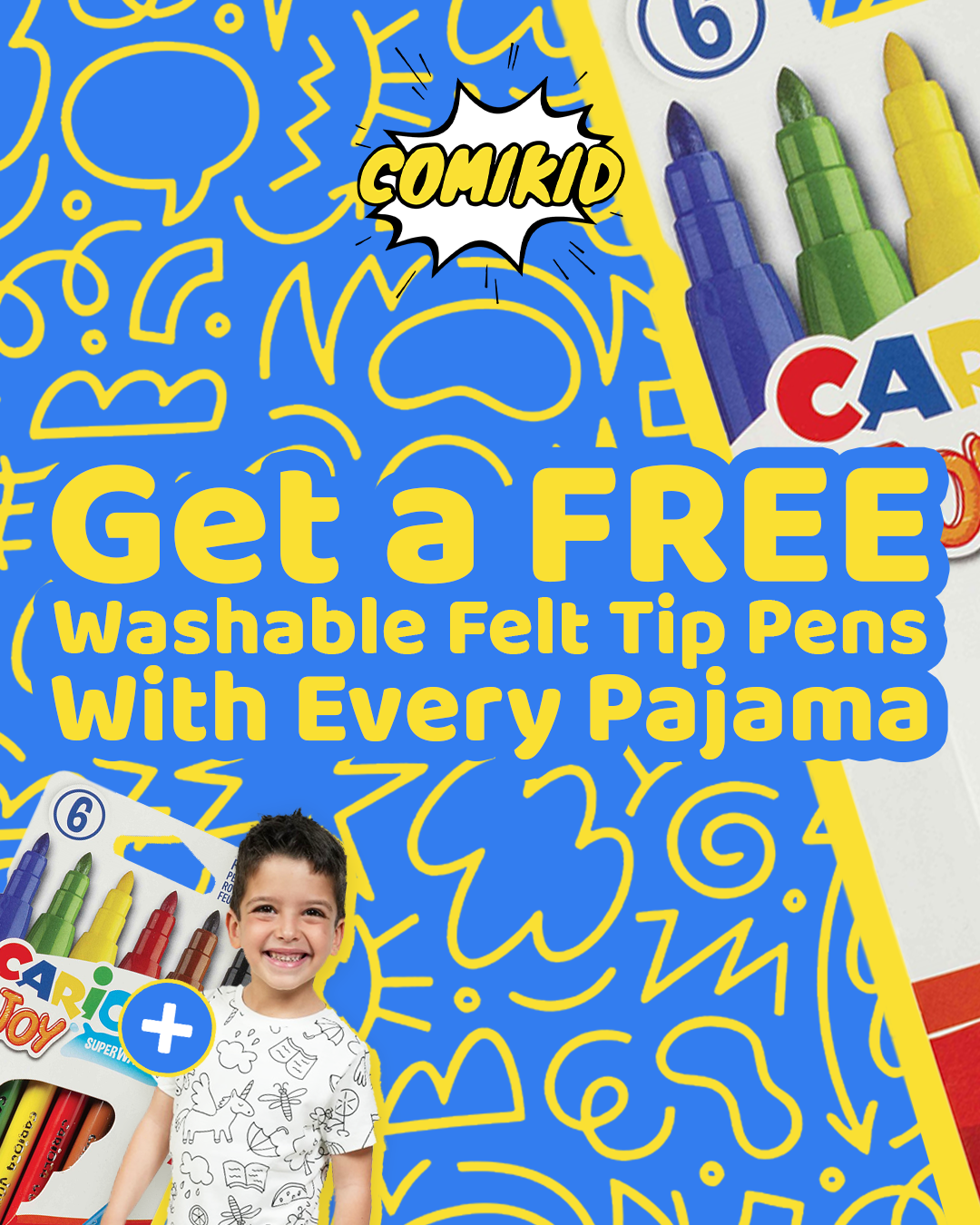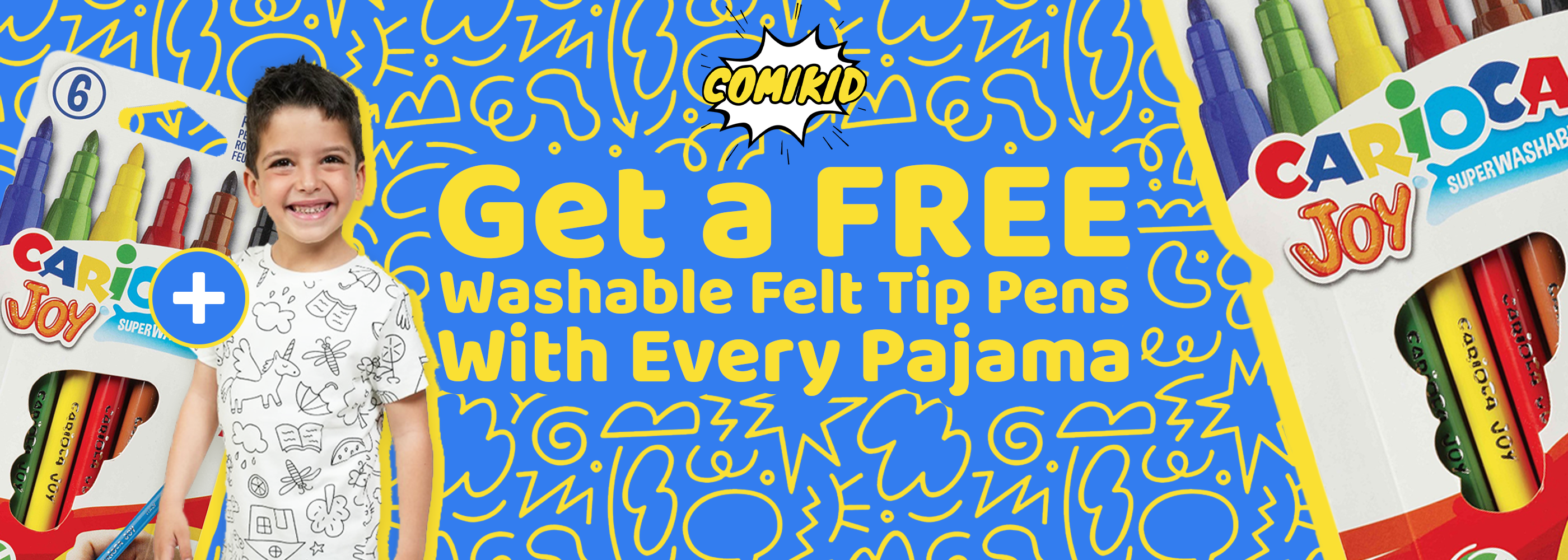 Every pajama set comes with a pack of Carioca Joy Superwashable markers, developed specifically for young children. These pens: